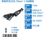 INTERRUTTORE CON CAVO DI ALIMENTAZIONE 2X0.75M 1,5M NERO