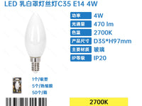 LAMPADINA A FILAMENTO LED-C35-E14-BIANCO LATTE-4W-2700K-470