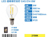 LAMPADINA A FILAMENTO LED G45 E14 8W TRASPARENTE(8W,880LM,E1