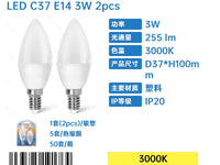 LED A5 C37 (2 PCS)(3W,E14,3000K)