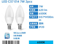 LED A5 C37 (2 PCS)(7W,E14,6400K)
