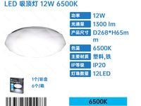 PLAFONIERA A LED-12W-6500K-1300 LM-PLASTICA,FERRO