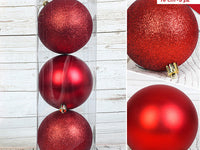 PALLINE "CHRISTMAS" SATIN/GLITTER BOX 3 PCS/10 CM.ROSSO