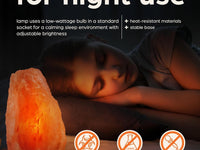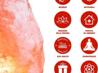 Purificazione dell'aria: I cristalli di sale sono noti per la loro capacità di purificare l'aria, riducendo la presenza di polveri, allergeni e batteri. Quando la lampada è accesa, il calore rilasciato dal sale ionizza l'aria, creando un ambiente più sano.